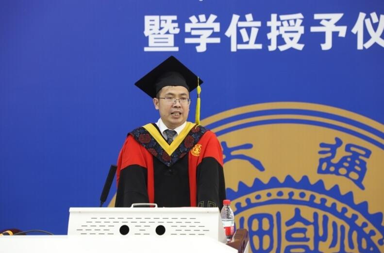 仪式在庄严齐唱国歌中开始,副院长方涛首先汇报了学院2020年毕业生就业情况。2020年,一场突如其来的新冠肺炎疫情给毕业生求职工作带来极大的挑战,但是学院就业工作仍取得了较好的成绩,目前本科生就业率为97.6%,硕士生和博士生就业率均为100%。
