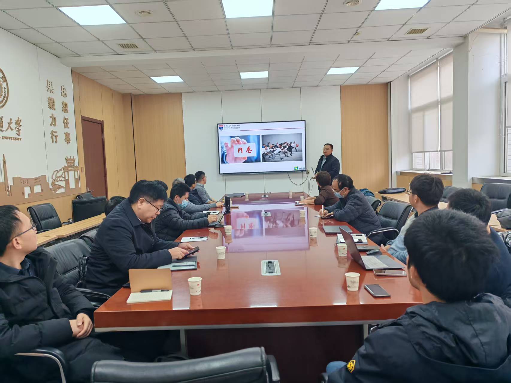 管理学院魏泽龙教授首先作了题为“以有组织的创新推动科技自立自强”讲座,他系统讲解了从引进消化吸收到科技自立自强、创轨领先等命题,并从科学、技术、产业、经济等视角进行了分析。通过企业有组织创新的五个等级,阐释了创新的本质与创新组织的标准,提出了技术创新的本质以及创新创业系统的内涵,最后总结了科技创新和产业创新的融合逻辑以及企业主导的科技成果转化的相关模式,并对学院开展校企合作提出了意见和建议。